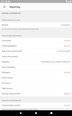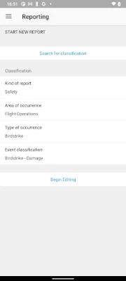 During the process of authentication the report forms customized to your particular organization will be downloaded automatically. Select the appropriate report form and file the information relevant to your Safety department. As soon as Internet connection is reestablished the report you entered is automatically sent to your Safety department.