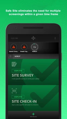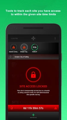 Safe Site provides workers with the ability to perform self administered site specific surveys ensuring that their health and safety is monitored. Site administrators will also have the ability to deploy site access codes for workers to be able to scan into a site safely, while having the tools to track each site they have access to within the given site time limits.