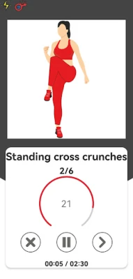 On the one hand, one of the biggest advantages of the abdominal exercises in this app is that all the exercises are standing up. By performing the standing abs workout, there is more involvement of additional muscles which means a more complete total body workout. This means a higher intensity workout and allows this fat burning cardio workout to help you burn calories and lose weight while building core strength for a flatter tummy.