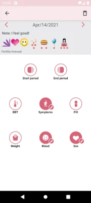 * Over 100 symptoms, other options like weight, BBT, moods, pills, sex life, cervical mucus, graphs and much more.
