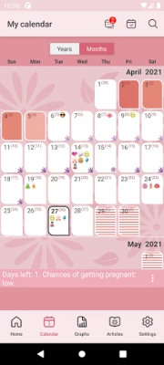 * You will see the probability percentage of your fertile days. This will allow you plan much better or to prevent pregnancy.